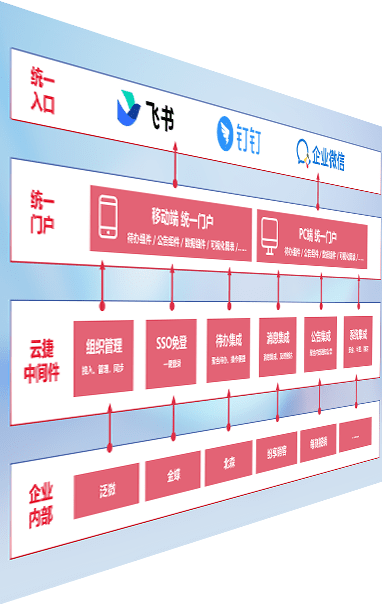 对协作平台提供支持服务,,,支持企业应用与协作平台对接,,,包含组织同步、、消息集成、、待办集成等。。。支持目前主流的协作平台:钉钉、、企微和飞书。。。。